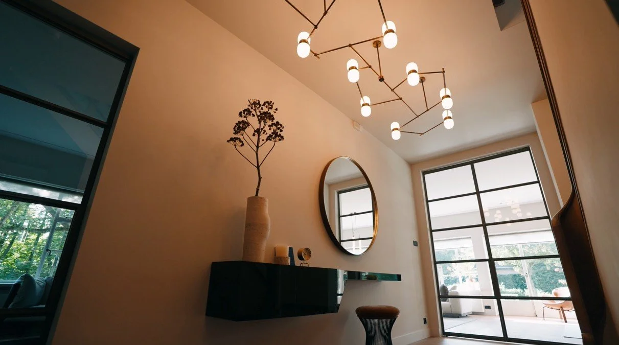 De klassieke elementen en symmetrie in de woning sluit helemaal aan op de verlichting dat het totaal plaatje helemaal compleet maakt.